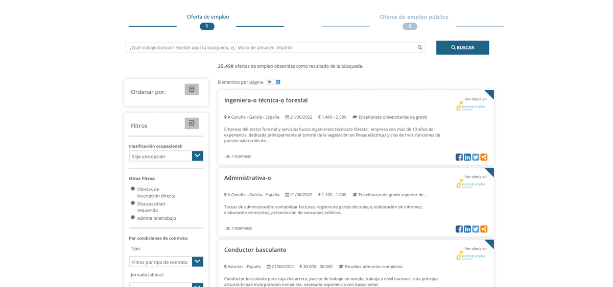 - Opciones de empleo en el portal Empléate.