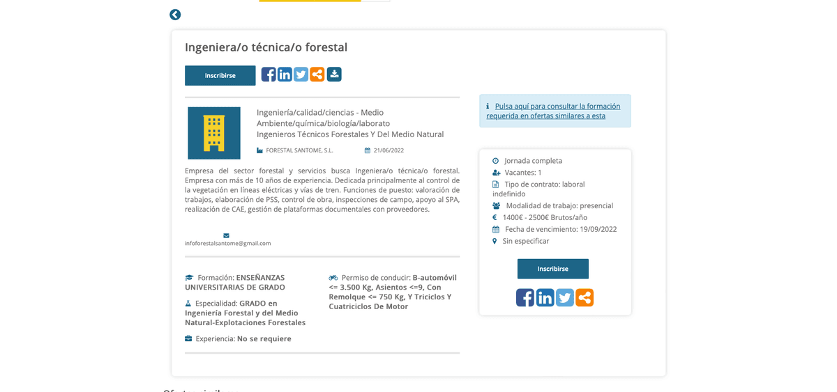 Una vez que elijas la oferta apropiada según tu perfil laboral, debes hacer clic en “Inscribirse” para formalizar la operación. Después, solo tienes que esperar a que te contacten y probar suerte en tu candidatura.